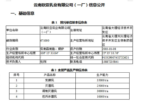 云南歐亞乳業有限公司子公司牧場環保信息公示